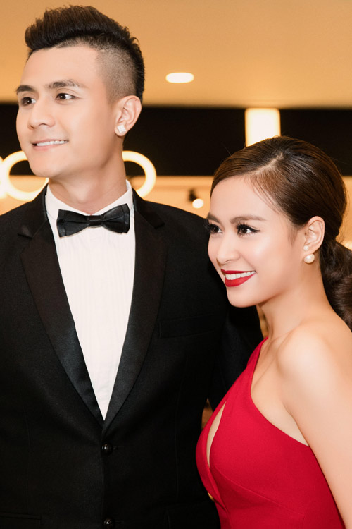 Hoàng Thùy Linh đã tự lái xe đến để ủng hộ người bạn thân thiết Vĩnh Thụy. Cô chọn chiếc váy đỏ khoét ngực, khoe làn da trắng nõn và vòng 1 gợi cảm. Đứng cùng Vĩnh Thụy, hai người vô cùng đẹp đôi.