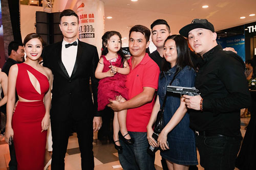 Cặp đôi chụp hình cùng gia đình anh chị của Vĩnh Thụy tại sự kiện.