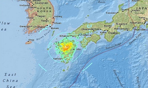 Ngày 14/4, một trận động đất mạnh 6,2 độ Richter xảy ra tại miền nam Nhật Bản. Trong vòng chưa đến hai ngày sau, vùng này tiếp tục hứng chịu trận động đất mạnh 7 độ richter, kéo theo khuyến cáo về sóng thần trong khu vực.