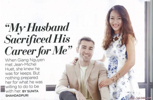 "Mặc dù yêu Hà Nội cũng như đã khá quen thuộc với cuộc sống nơi đây nhưng Jean-Michel không thuyết phục tôi ở lại mà quyết định chuyển đến Singapore cùng tôi bởi anh ấy biết cơ hội đó đối với tôi quan trọng thế nào", Giang hạnh phúc chia sẻ.