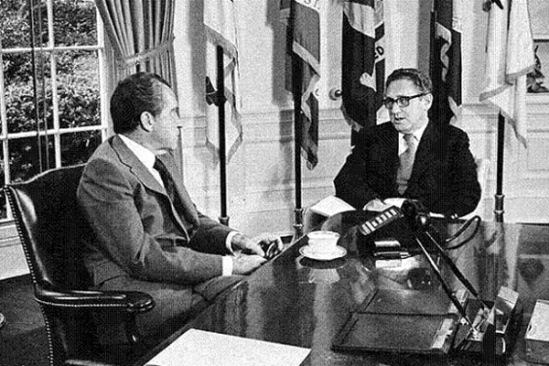 Sau cuộc bầu cử, chính quyền Nixon theo đuổi một chính sách Việt Nam vô cùng nguy hiểm. Vừa đàm phán, vừa đánh nhau, đặc biệt là leo thang ném bom miền Bắc Việt Nam và sang cả Lào lẫn Campuchia. Henry Kissinger được bổ nhiệm làm Cố vấn An ninh Quốc gia và sau đó là Bộ trưởng Ngoại giao, giám sát việc mở rộng bí mật của cuộc chiến tranh sang Lào và Campuchia, cũng như chiến dịch ném bom bí mật vùng Đông Dương. Ngoài ra Mỹ còn cho xây dựng đường dây điện thoại từ Văn phòng của Kissinger ở Washington với Đại sứ quán Mỹ tại Thủ đô Phnom Penh. Đây là hành động dẫn đến việc trỗi dậy của Khmer Đỏ vào năm 1975 và nạn đói sau đó đã cướp đi hàng triệu sinh mệnh người dân Campuchia.