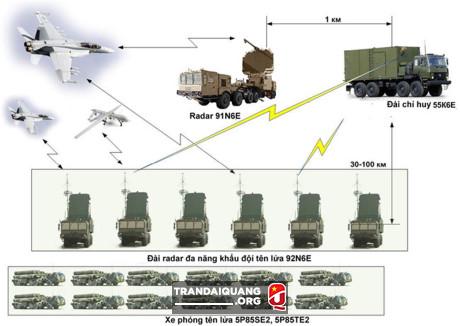 1- Rađa đa năng 92N6E hoặc 92N2E, tầm quan sát 400 km, theo dõi 100 mục tiêu.