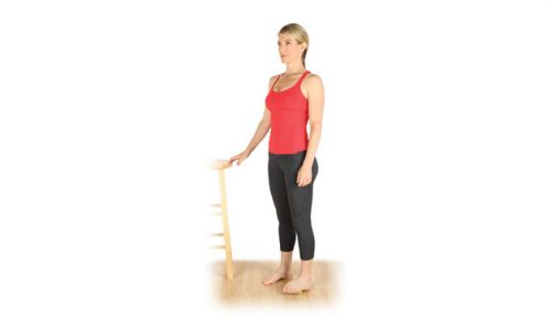 Đứng bên cạnh một bức tường hoặc dùng một chiếc ghế giữ thăng bằng, đặt một quả bóng bên dưới lòng bàn chân