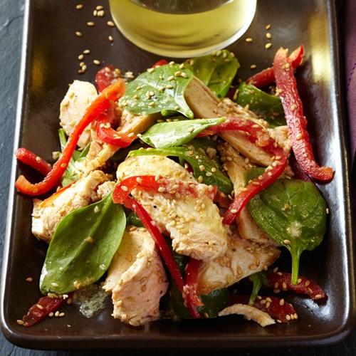 Là một tín đồ của rau, thực đơn của Barack Obama thường có salad. Thêm một món salad yêu thích của tổng thống là ức gà ăn kèm rau bina, vừng và ớt đỏ.