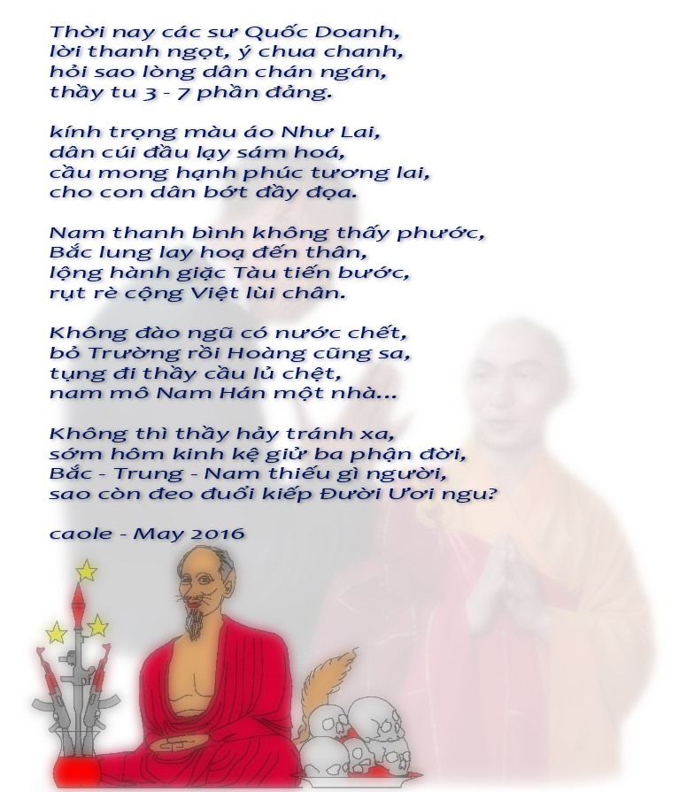 Vây cũng xin chúc cả bầy vẹm khỉ an giấc ngh́n thu ,không c̣n lu bu ,trù dân hại nước ,rước giặc về nhà .