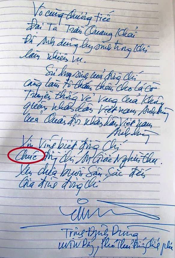 Phó thủ tướng Trịnh Đ́nh Dũng ghi trong sổ tang vĩnh biệt phi công Khải: CHÚC đồng chí an giấc ngh́n thu
