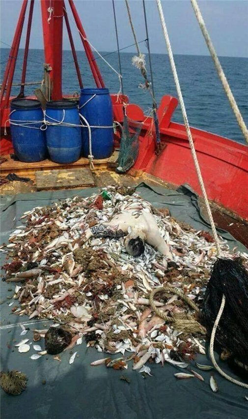 Rốt cuộc bên trong mẻ lưới đó có gì khiến toàn bộ ngư dân trên tàu "đổ mồ hôi hột"? Gần đây, cư dân mạng nước ngoài đang truyền tay nhau những hình ảnh khiến bất cứ ai cũng phải run mình sợ hãi. Theo đó, khi các ngư dân đang đánh cá trên biển Bali và kéo mẻ lưới lên thuyền thì bất ngờ phát hiện một thi thể đang trong quá trình phân hủy.