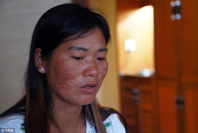 Khuôn mặt chi chít vết sẹo sau khi bị chồng và bồ thuê người rạch mặt của cô Jing.