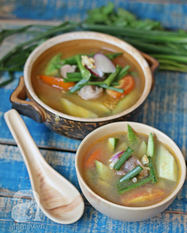 Vị ngọt từ thịt bắp bò kết hợp cùng sự chua dịu nhẹ của cà chua và dưa leo sẽ đem đến cho gia đình bạn một món canh lạ miệng nhưng đầy bổ dưỡng sau một ngày làm việc mệt mỏi. Nếu bạn muốn canh có thêm vị chua bạn có thể dùng thêm nước cốt me.
