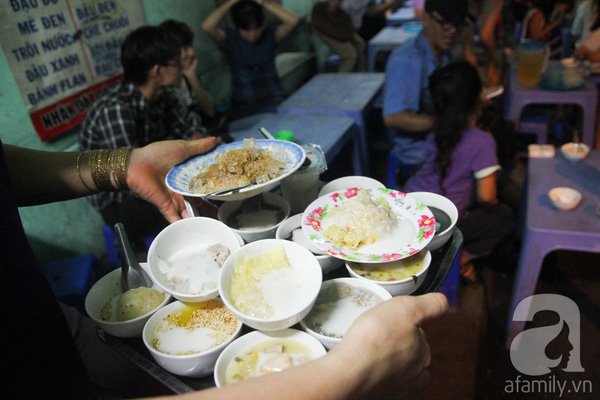 Quán chè nhỏ này bên hông chung cư Sư Vạn Hạnh, gần góc đường Sư Vạn Hạnh – Nguyễn Chí Thanh bắt đầu phục vụ tầm 4-5h chiều. Dù không gian quán khá chật nhưng luôn đông khách bởi vì sẽ được thưởng thức cả một mâm chè 15 món, với giá chỉ 75 ngàn đồng. Trong “bộ sưu tập” 15 loại chè ở quán này có đủ loại, nào là chè ba bà, chè khoai môn, chè đậu đen cốt dừa, chè trôi nước, chè táo xoạn… nóng hổi đựng trong những chiếc chén nhỏ xinh xắn. Người ăn cũng có thể gọi vài loại chè bạn yêu thích thay vì nguyên mâm.