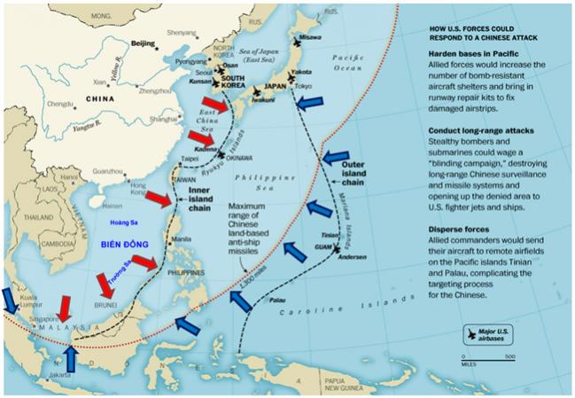Nếu tình huống này được hình thành, Trung Quốc có đủ sức mạnh tiến ra biển lớn Ấn Độ Dương, Thái Bình Dường và buộc Mỹ phải chấp nhận vị thế của mình đề chia sẻ lợi ích thương mai, vận chuyển hàng hóa trên các vùng nước toàn cầu. Có lẽ chính vì vậy mà trong chính sách “xoay trục”, Mỹ đã làm tất cả, bao gồm cả dỡ bỏ cấm vận vũ khí sát thương cho Việt Nam để có thể kiềm chế Trung Quốc trên vùng nước biển Đông.
