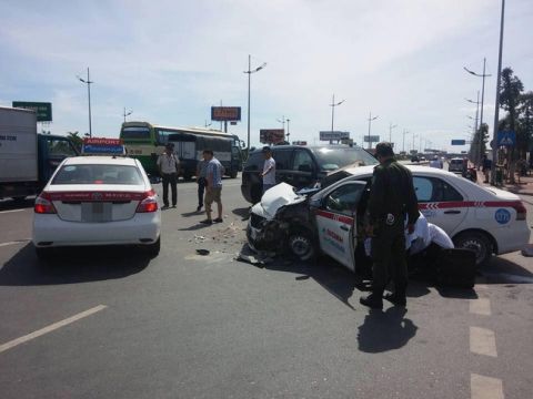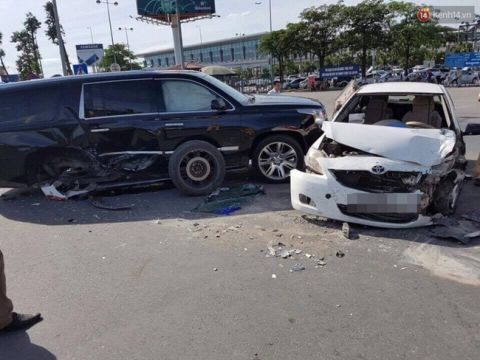 Khoảng 14h30 ngày 15/6, xe ô tô Cadillac mang BKS Hà Nội đang lưu thông trên đường Võ Nguyên Giáp, huyện Sóc Sơn, Hà Nội, đoạn đối diện nhà ga T1 ở sân bay Nội Bài thì bất ngờ xảy ra va chạm với một xe taxi.