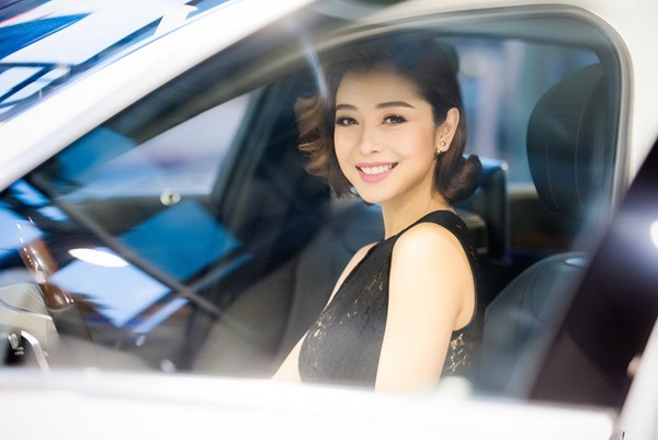 Người đẹp cũng chọn cách trang điểm trong sáng, mái tóc ngắn uốn xoăn kiểu cổ điển vô cùng kiêu sa.