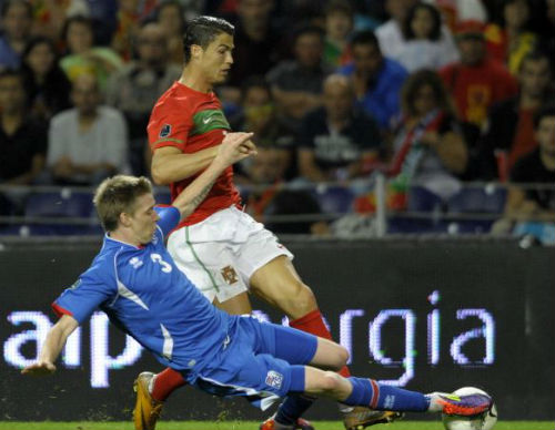 Ronaldo từng ghi bàn vào lưới Iceland năm 2010 ở ṿng loại Euro 2012