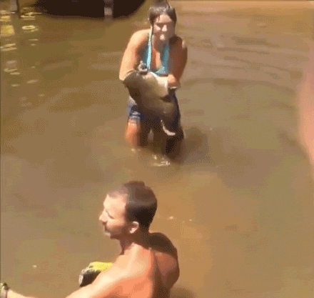 Chúng ta thường nghĩ rằng phải trang bị đủ các dụng cụ chuyên dụng hoặc ít nhất là một tấm lưới tươm tất mới có thể đánh bắt cá. Thế nhưng, bằng năng lượng siêu nhiên nào đó, người phụ nữ có tên Hannah này lại có thể dễ dàng bắt nguyên con cá trê khổng lồ chỉ bằng tay không.