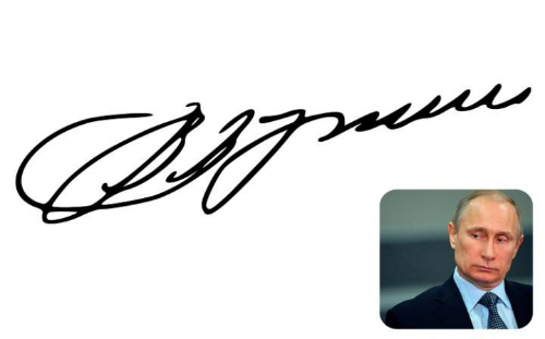 "Hãy nhìn vào chữ ký này. Thậm chí với những người không biết gì về ông Putin hay tình hình thế giới, họ cũng có thể thấy đây là chữ ký của người có khả năng chi phối người khác", Quigley nói về chữ ký của Tổng thống Nga Putin.