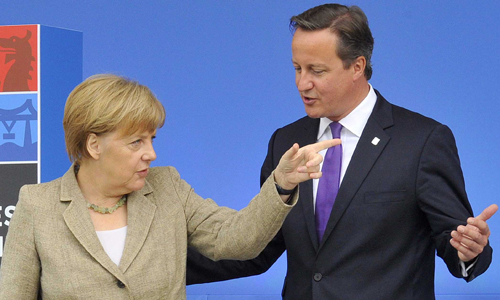 Thủ tướng Đức Angela Merkel và người đồng cấp Anh David Cameron. Ảnh: Corrienteroja