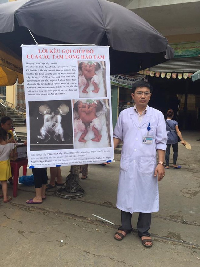 Ngày 14/7, hình ảnh bác sĩ ra chợ xin ủng hộ cho gia đình hai cháu sơ sinh bị dính liền phần ngực và bụng đang nhận được sự quan tâm đặc biệt của dư luận.