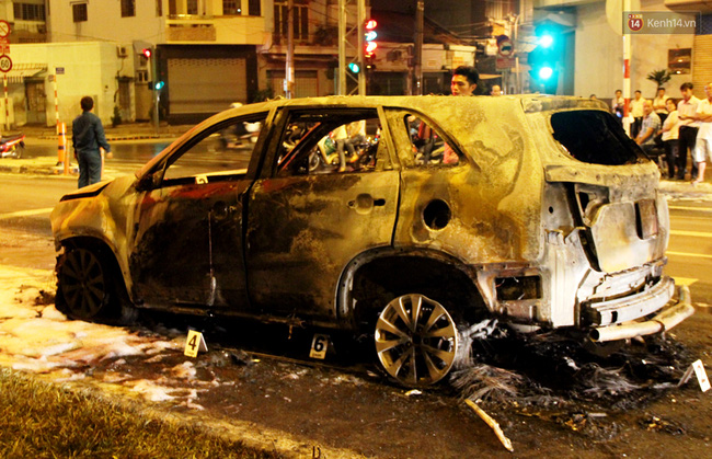 Ngọn lửa nhanh chóng bao trùm ôtô. Lực lượng PCCC cử hai xe cứu hỏa đến dập tắt lửa nhưng ôtô đã bị cháy trơ khung.