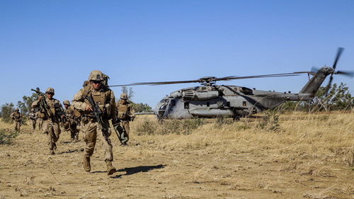 Lính thuỷ quân lục chiến Mỹ tập trận ở khu huấn luyện Bradshaw Field tại bang Northern Territory của Úc Thuỷ quân lục chiến Mỹ
