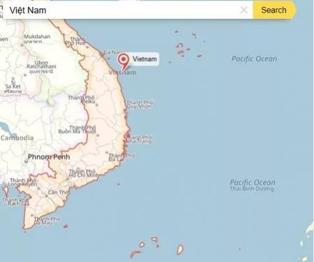 Nếu sử dụng dịch vụ bản đồ Yandex Maps (tại địa chỉ https://yandex.com/maps/) và tìm kiếm địa danh Việt Nam, khi kết quả trả lại sẽ khoanh vùng tất cả các khu vực thuộc lãnh thổ Việt Nam, bao gồm cả hai quần đảo Hoàng Sa và Trường Sa.