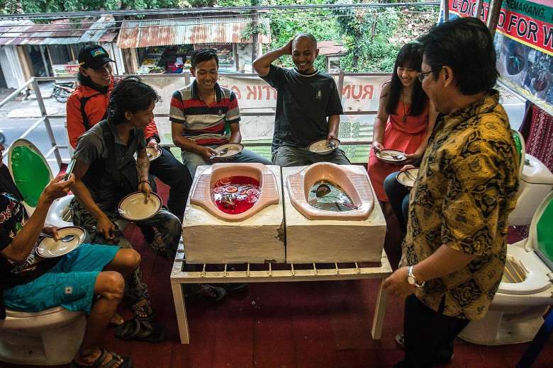 Vietbf.com - Đã gây sốt dư luận Indonesia với món súp thịt viên rất ngon đựng trong bồn cầu bệt của quán cafe toilet vừa mới khai trương vào tháng 4 và chỉ phục vụ cho những khách nào đặt bàn trước, nhưng cũng khiến nhiều khác hơi ngờ ngợ lo lắng.
