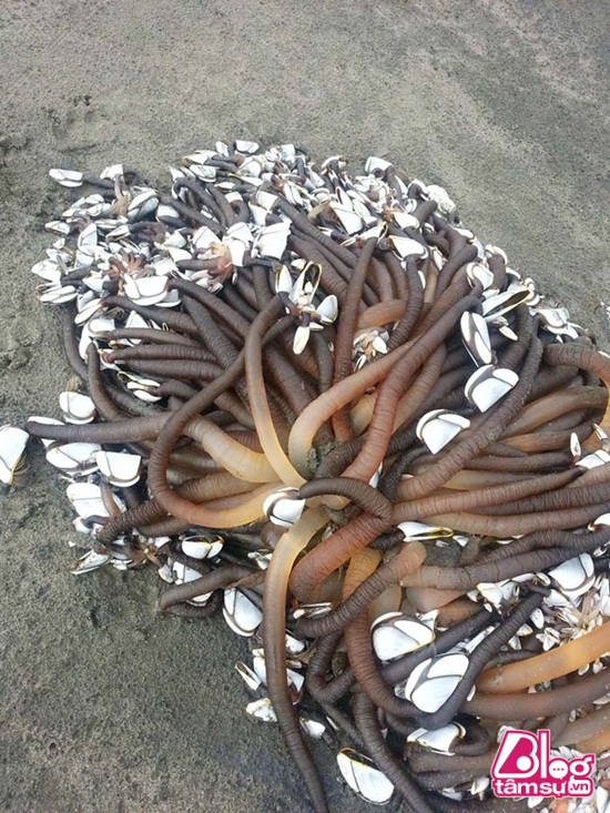 Những sinh vật lạ xuất hiện dày đặc trên bãi biển.