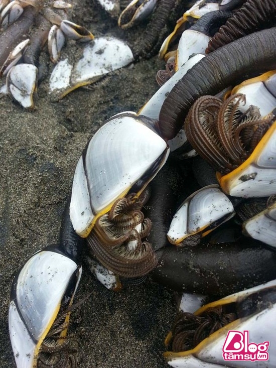 Tuy nhiên khi họ đến gần và nhìn kĩ hơn thì họ phát hiện ra đó là những con hầu cổ ngỗng. Hàu cổ ngỗng là một loài giáp xác biển lưỡng tính, thường trôi dạt theo dòng nước đại dương ở hầu hết các vùng biển ôn đới trên trái đất. Chúng là một trong những sinh vật kỳ lạ nhất với vỏ hình trái tim rất đẹp, màu phấn trắng cùng đường viền đen ấn tượng.