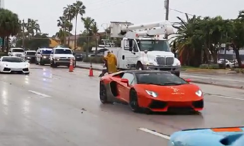 Khoảng 10 chiếc của Gia Lai Team tham gia đoàn hàng trăm siêu xe nối đuôi theo sau Lamborghini Aventador của cảnh sát Mỹ.