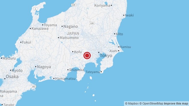 Vị trí của thành phố Sagamihara trên bản đồ nước Nhật. Nó cách thủ đô Tokyo 40 km về phía tây nam. Đồ họa: CNN