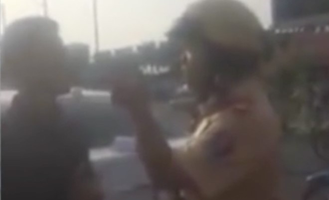 Hình ảnh trung úy Khoa đánh người được cho là vi phạm giao thông được người dân ghi lại và đưa lên mạng xã hội. Ảnh: Cắt từ clip.
