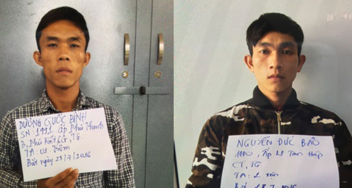 Ngày 28/7, Cơ quan công an tỉnh Tiền Giang cho biết, đã ra lệnh bắt giữ Nguyễn Đức Bảo (SN 1980, ngụ xã Tam Hiệp, huyện Châu Thành) và Dương Quốc Bình (SN 1991, ngụ huyện Chợ Gạo) để điều tra về hành vi trộm cắp tài sản.