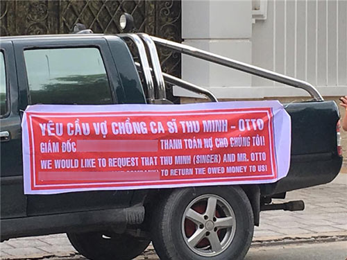 "Thu Minh là ca sĩ hạng A tại Việt Nam, lấy chồng ngoại quốc là doanh nhân, đại gia mà cả hai lại dùng sự nổi tiếng để lừa đảo, cướp tiền doanh nghiệp Việt Nam lên đến hàng trăm tỷ đồng để mua nhà, mua xe sống ảo. Các chủ nợ đã, đang lần lượt đến tận nhà để đòi nợ, còn vợ chồng nữ ca sĩ đang trốn chui trốn nhủi từ nhà này sang nhà khác" - nguồn tin cho biết.