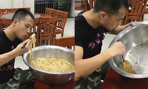 Old  Default Lính cứu hỏa trẻ TQ này gây sốt trên mạng vì ăn hết một chậu mỳ tôm