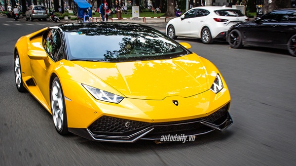 Mở màn cho cuộc mua sắm siêu xe của đại gia phố núi này chính là việc đưa về chiếc Lamborghini Huracan LP610-4 màu vàng mang biển số siêu đẹp 68888. Siêu xe này từng thuộc quyền sở hữu của một đại gia bất động sản tại Sài Gòn tuy nhiên sau đó đã bán lại và về tay Cường đô la. Sau khi về tay mình, dân chơi này đã dán thêm decal ở một vài chi tiết như trần và cản trước giúp xe trông khác biệt và ấn tượng hơn.