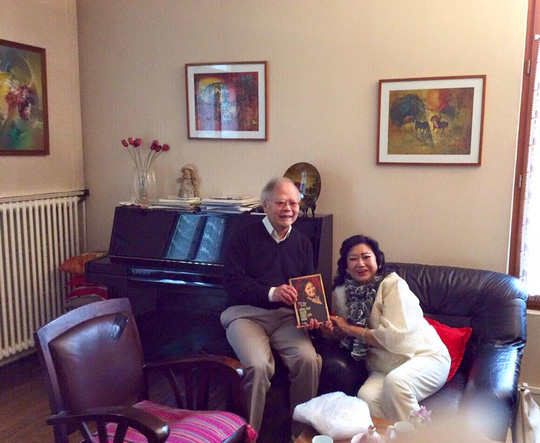 NSND Kim Cương tặng sách hồi ký cho GS Cao Huy Thuần tại Pháp
