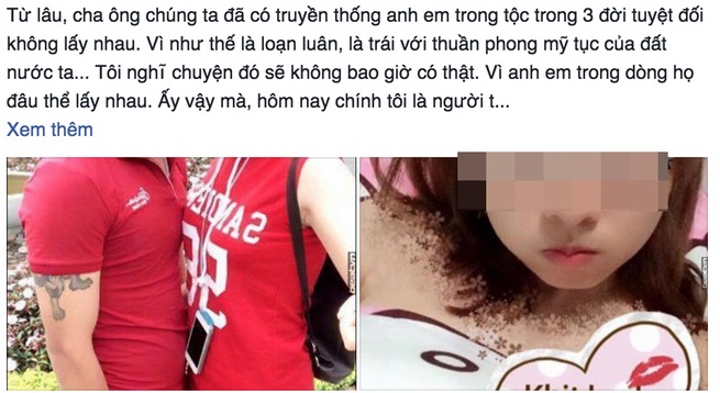 "Từ lâu, cha ông chúng ta đã có truyền thống anh em trong tộc trong 3 đời tuyệt đối không lấy nhau. Vì như thế là loạn luân, là trái với thuần phong mỹ tục của đất nước ta...
