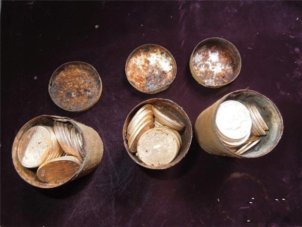 Vừa qua, một đôi vợ chồng tại bang Nevada (Mỹ) trong lúc dắt chó đi dạo quanh một bãi đất trống thì vô tình phát hiện một lon sắt gỉ sét. Lon sắt vốn được chôn sâu dưới lòng đất, sau khi cơn bão lớn đi qua đã khiến chúng trồi lên.
