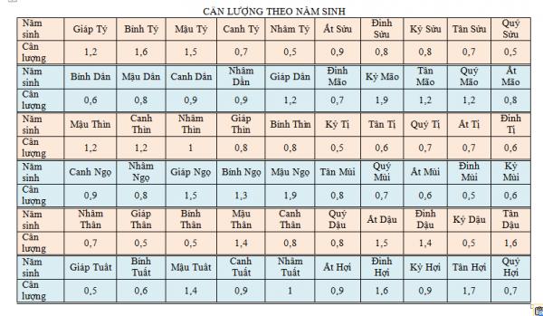 Cân lượng giờ sinh: Giờ Tý là 1,6