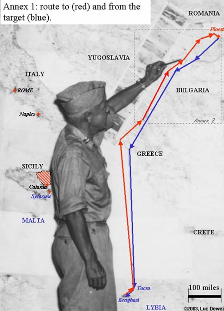 Các oanh tạc cơ xuất phát từ Benghazi, Libya tập kích vào Poesti và rút về theo cùng tuyến đường. Ảnh: BCwarmap.