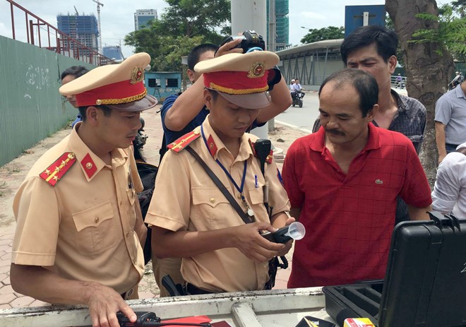 Khi tổ công tác kiểm tra nồng độ cồn đối với anh Nguyễn Văn Nam (53 tuổi, ở huyện Thanh Trì, Hà Nội). Tài xế ôtô 7 chỗ cho biết, vừa uống 2 cốc bia tại một nhà hàng gần đó.
