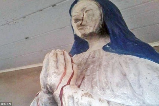 Hôm qua 18/8, tờ Daily Mail đưa tin đang khiến xôn xao dư luận. Đó là bức tượng Đức mẹ đồng trinh tại một nhà thờ nhỏ ở thị trấn Puerto Rico, thuộc khu Bảo tồn hoang dã quốc gia Manuripi-Heath Amazonian, Bolivia xuất hiện trên khóe mắt một vệt đỏ như máu. Liệu những giọt máu chảy dài trên má Đức mẹ đồng trinh có điềm báo gì?