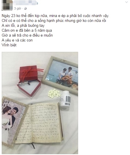 Những dòng chia sẻ kèm theo tấm ảnh và những viên thuốc ngủ bóng gió chuyện Minh Nhựa sẽ quyên sinh. Ảnh: FBNV