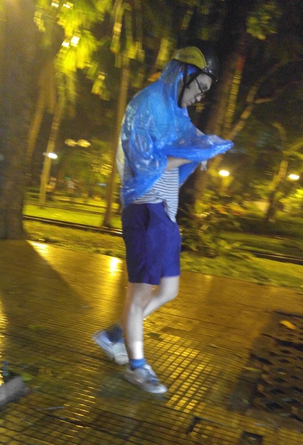 Đến 23h, cơn mưa vẫn chưa ngớt, nhiều người vẫn nán lại công viên Tao Đàn. Họ rảo quanh công viện trong những chiếc ô, áo mưa và thậm chí có nhiều người chỉ đội lên đầu một bao nilon, chiếc áo khoác có mũ sũng nước, lượn lờ trong công viên tối om để săn thú ảo.
