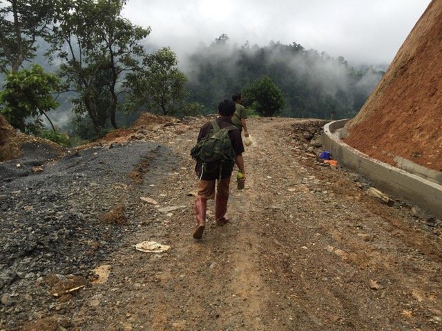 Chúng tôi rời quán, bắt đầu hành trình đi bộ vào Mà Sa Phìn. Con đường nhão nhoẹt, trơn truột. Những viên đá to bổ chảng như những con trâu rừng bị cuốn phăng, án ngữ giữa đường. Có những cung đường bị sạt lở gần hết, chỉ đủ để đặt 1 bàn chân men theo và bước qua.