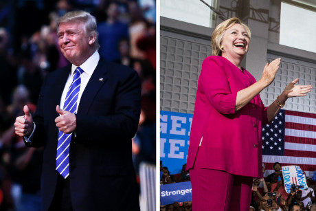 Tỷ phú Trump và bà Clinton trong một buổi vận động cử tri vào tháng 8. Ảnh: NYT