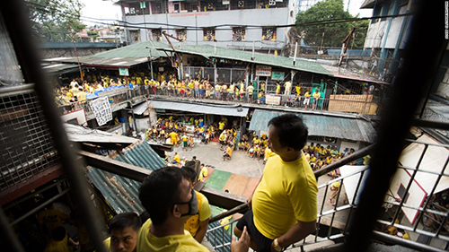 Mọi khoảng không gian đều chật cứng những tù nhân áo vàng. 60% số người vào đây phạm các tội danh liên quan tới ma túy. Ngày nào cũng như ngày nào, họ giành giật từng chỗ ngồi, chỗ ngủ giữa cái oi bức của Philippines.