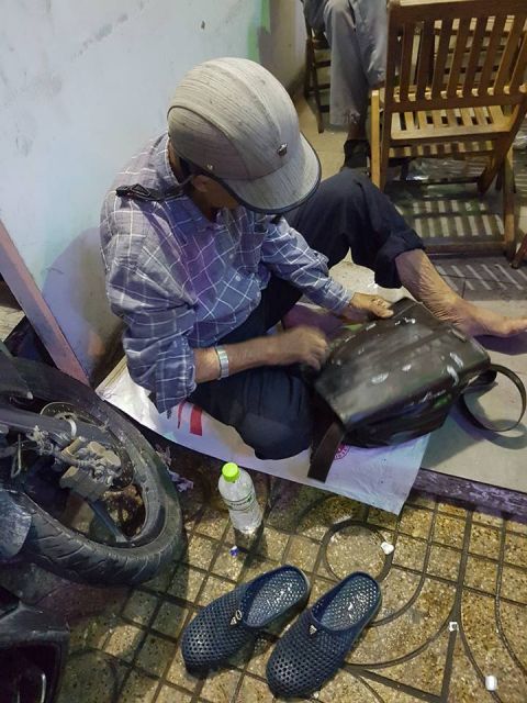 “Trời mưa to ông vẫn ngồi xin tiền . Ông không về vì chưa xin đủ . Một ngày ông phải xin được hơn 50 ngàn để chi phí . 20 ngàn tiền đưa cho con gái đóng tiền thuê nhà ( ông ở chung với con rể và con gái út , tiền thuê nhà 1tháng/4tr . Con rể bắt ông và con gái chia đôi tiền nhà nên ông phải đóng góp 1ngày là 20 ngàn ) . 30 ngàn tiền ông thuê xe ôm chở đi đi về về từ nhà ra siêu thị nơi mà ông ngồi xin mỗi tối . Còn nếu hôm nào ông muốn ăn gì thì đưa thêm cho con gái 20 ngàn để nấu cho ông ăn . Con gái ông nghèo đi rửa chén thuê.