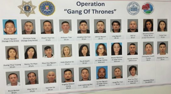Báo The Mercury News ở San Jose (bang California) ngày 24.8 (giờ địa phương) đưa tin chiến dịch kéo dài 6 tháng mang tên “Gang of Thrones” (tạm dịch "Băng đảng Vương quyền") do đơn vị chống băng nhóm có tổ chức của Sở cảnh sát San Jose (SJPD) chỉ huy. Mục tiêu của chiến dịch nhằm triệt phá các đường dây tống tiền, mua bán ma túy và tổ chức đánh bạc phi pháp tại nhiều quán cà phê của người Việt tại San Jose.