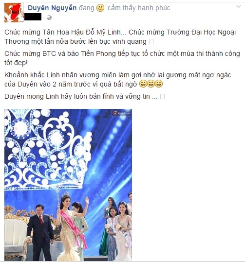 Không chỉ vậy, một vài status không mấy tích cực của Đỗ Mỹ Linh trước khi đăng quang cũng bị cư dân mạng nhanh tay chụp ảnh màn hình và gây nên trang cãi lớn. Được biết, những dòng trạng thái này được viết từ năm 2009, khi ấy, Tân Hoa hậu VN 2016 mới 13 tuổi và đang là học sinh cấp 2.